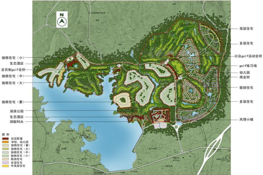 高尔夫球场:18洞山地球场,18洞丘陵球场,18洞湖滨球场